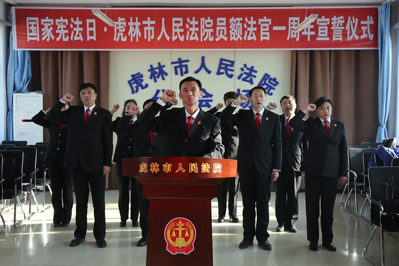 副院长褚廷友主持宣誓活动。他提出,希望全体法官要牢记这个光荣的时刻,牢记肩负的崇高使命和历史责任,牢记今天庄严的承诺,倍加珍惜党和人民赋予的权力,让宪法法律永驻心中,让法治成为信仰。忠实履行法律职责,坚持司法为民、公正司法,以实际行动履行我们的庄严誓言。