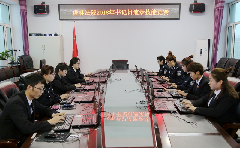 为进一步深化司法体制改革,确保书记员能够高效、准确完成好庭审记录等审判辅助工作任务,促进审判团队办案的提升,2018年3月13日,虎林法院组织全院各部门26名书记员在五楼会议室开展2018年第一次书记员速录技能竞赛。