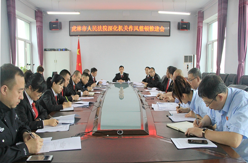 为进一步落实省市深化机关作风整顿、优化营商环境活动要求, 5月4日,虎林法院召开党组扩大会议,认真查摆纪律作风方面存在的突出问题,客观分析形势,明确整改重点,对下步更好开展集中攻坚进行了安排部署。院活动领导小组全体成员,立案、法警、信访等窗口部门负责人参加会议。