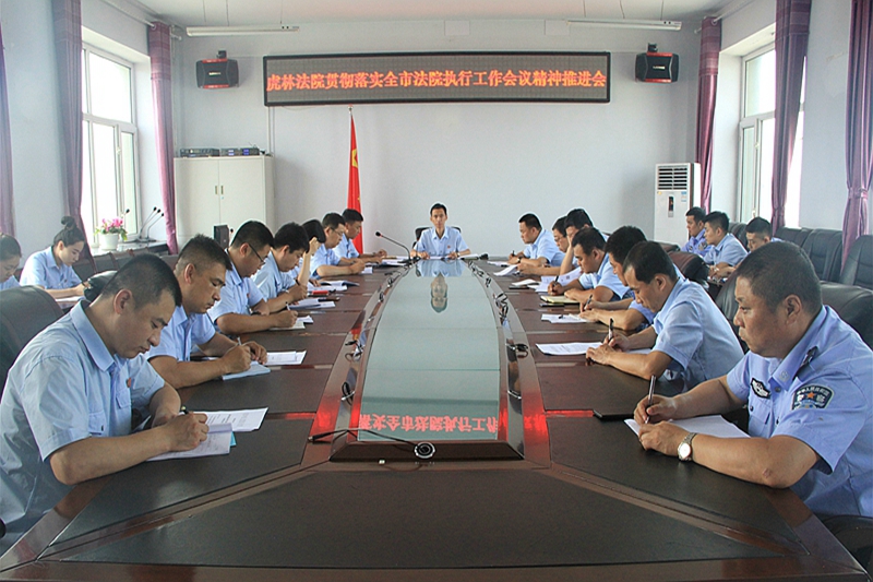 为认真贯彻落实全市法院执行工作院长座谈会精神,确保坚决打赢“用两到三年时间基本解决执行难”这场硬仗并顺利通过第三方评估,7月13日,虎林法院召开贯彻落实7月12日全市法院执行工作会议精神推进会,沙云凯院长提出具体要求,孙刚局长主持会议,全体执行干警参加会议。