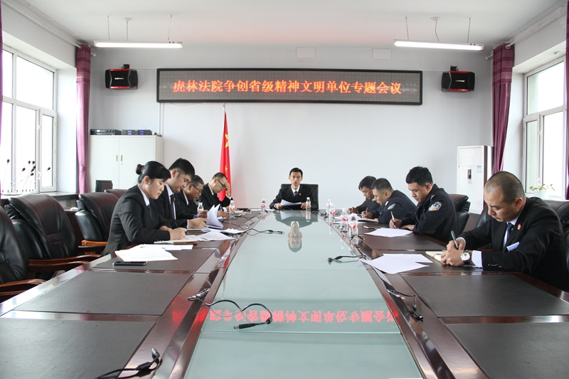 10月12日,虎林法院召开争创省级精神文明单位工作推进会,院党组成员及8个部门负责人参加会议。会议由党组成员、政工科科长姜焕军主持。