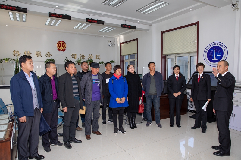 为了提升乡镇、村干部依法决策、依法行政、依法管理的能力和水平。10月17日上午,虎林法院开展第23次公众开放日活动,邀请乡镇村干部70余人参加此次活动。 活动中,在党组成员、副院长马玉兰和多元化解办公室主任张丽的陪同下先后参观了法治文化浮雕、法警大队、法院院训、执行指挥中心、法院文化长廊、诉讼服务中心、科技法庭等场所,全方位、多角度、深层次地了解法院的各项工作情况,切身感受司法公开。