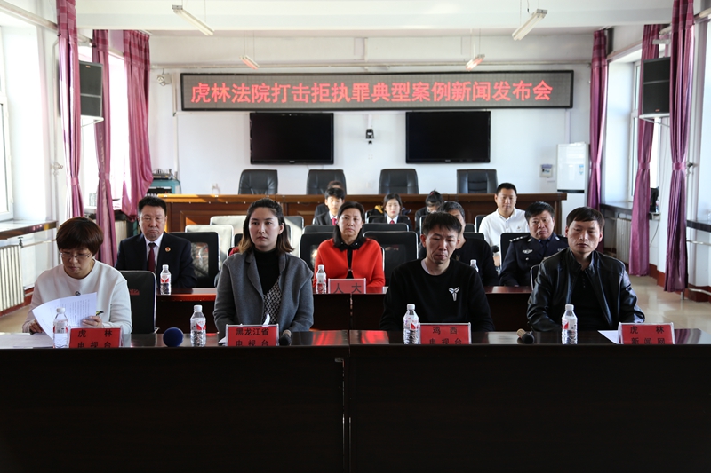为深入推进“决战决胜基本解决执行难”专项战役开展,增强社会公众对人民法院执行工作的了解和认知,10月25日,虎林法院召开打击拒执罪典型案例新闻发布会。发布会由虎林法院执行局实施组组长姜玉椿主持,鸡西中院执行局副局长孙禹波发表《攻坚克难 坚决打赢决胜执行难这场硬仗》讲话,虎林法院执行局局长孙刚通报打击拒执罪工作开展情况及典型案例。