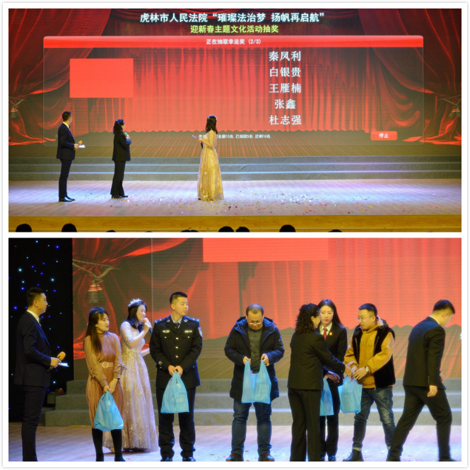 整场联欢晚会,格调清新,积极向上,既节俭又不失精彩,营造了快乐工作、健康生活的积极氛围;丰富了干警的精神文化生活,助推虎林法院不断建设底蕴深厚、激励上进的法院文化;增强了虎林法院全体干警的凝聚力、向心力和战斗力;充分表达了全体干警在院党组的带领下,在新的一年团结拼搏、砥砺奋进,再铸新辉煌的斗志雄心和豪迈情怀。