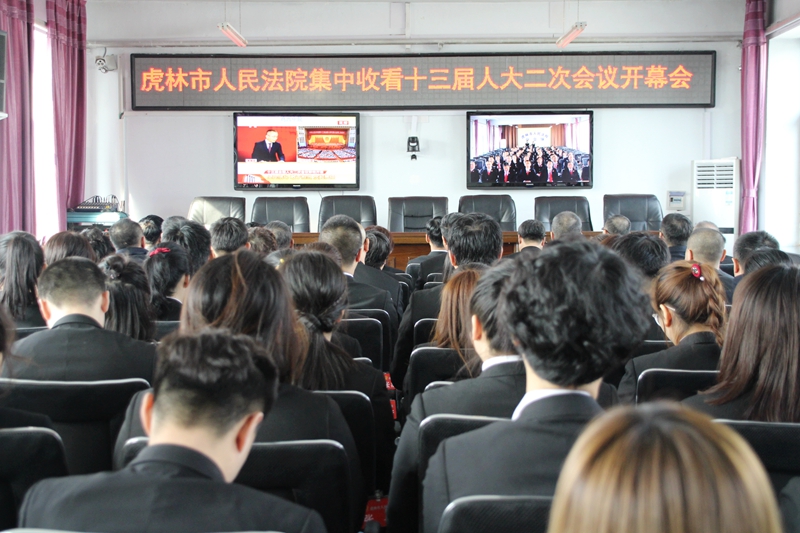 2019年3月5日上午9时,第十三届全国人民代表大会第二次会议在全国人民大会堂举行开幕会。虎林市法院党组书记、院长沙云凯带领全体干警在六楼会议室集中收看了“两会”盛况。全体干警聆听了国务院总理李克强所作的《政府工作报告》,及时了解了“两会”内容。