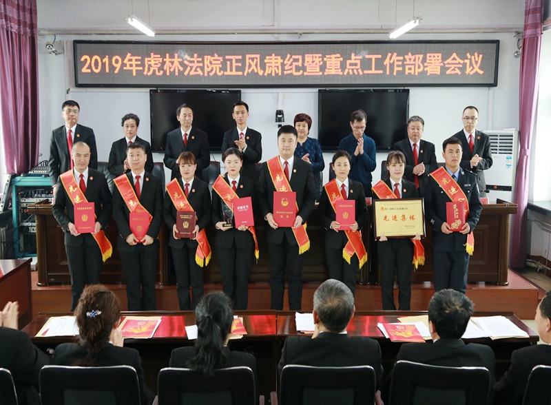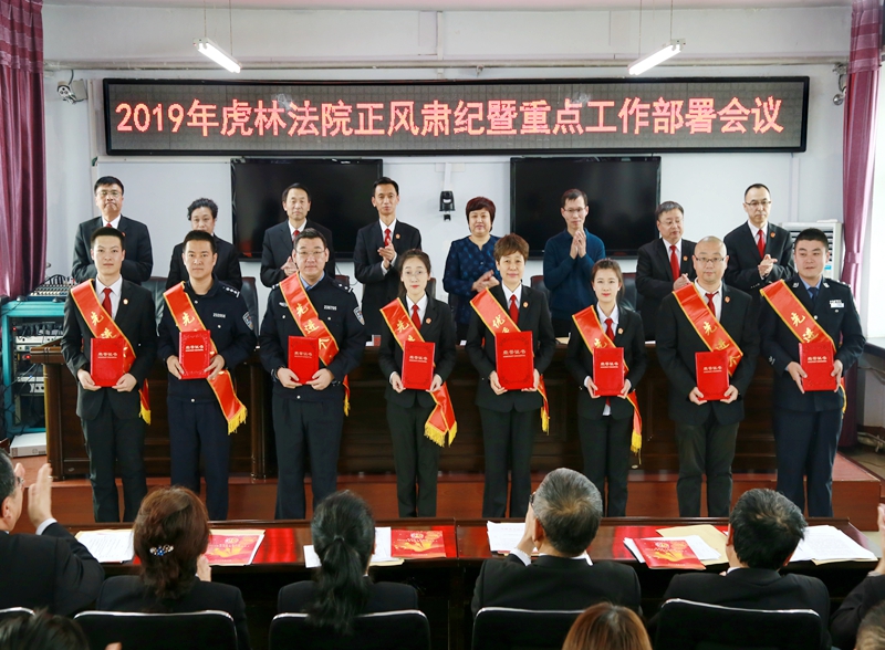 3月20日,虎林法院召开2019年正风肃纪暨重点工作部署会,虎林市委常委、政法委书记李冬华、副书记徐明新到会并讲话,虎林法院党组班子及全院干警110余人参加会议。