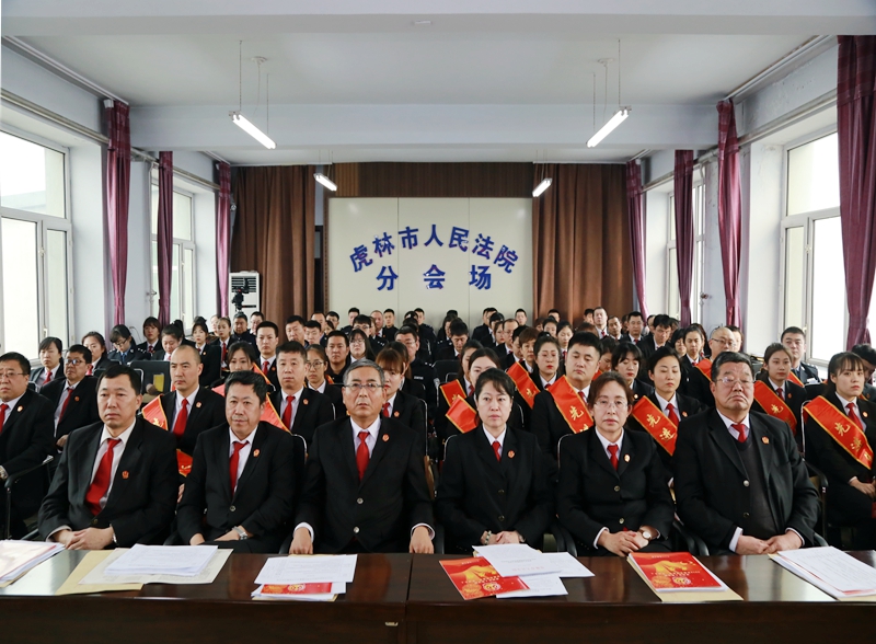 首先,徐明新副书记宣读了市委发来的《贺信》,李冬华书记代表市委对虎林法院2018年工作受到省法院通报表扬,取得员额法官人均结案292件,在全省175个基层法院排名第二且张淑梅、张丽、孙刚、刘晓岩、刘文全5名法官办案全省前列的好成绩,表示热烈祝贺,同时对下步工作提出:一要旗帜鲜明讲政治,增强“四个意识”、坚定“四个自信”、做到“两个维护”,组织好《中国共产党政法工作条例》专题学习,真正把党对审判工作领导落到实处;二要切实维护公平正义,依法审理和执行好每一起案件,全面落实公开审判制度,进一步加强诉讼调解,建立完善科学合理的审判监督机制,切实提高案件质效;三要助力全市中心大局,严厉打击各类刑事犯罪,加大与经济发展密切相关的民事、行政案件的审判和执行力度,依法维护群众合法权益;四要打造过硬审判团队,突出实战、实用、实效导向,开展“大练兵、大比武”活动,全面提升法律政策运用、防控风险、群众工作、科技应用和舆论引导能力;五要做“办事不求人”的表率,大力加强审判机关作风建设,突出“简、快、优、公、实”,最大限度保证群众“只进一扇门”“最多跑一次”。