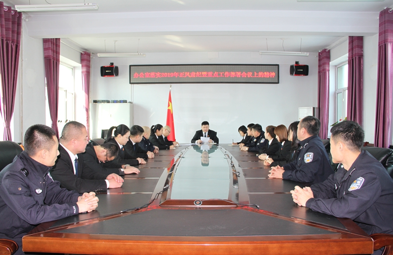 3月25日上午,虎林法院办公室召开会议,专题落实2019年正风肃纪暨重点工作部署会议精神,办公室全体干警参加会议。