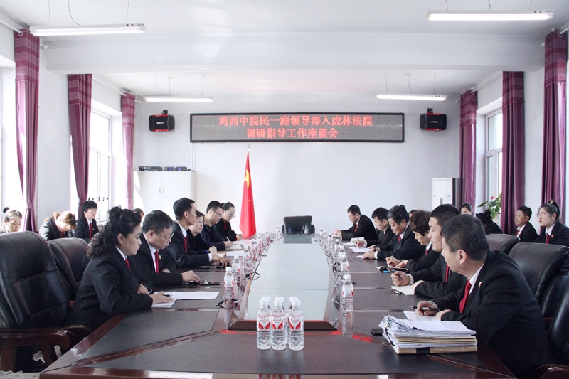 4月1日,鸡西中院民一庭庭长王伟一行3人来到虎林法院调研指导民事审判工作。调研采取座谈会形式进行,虎林法院党组书记、院长沙云凯出席并讲话,党组成员、副院长盖凤旭、审管办、民一庭、民二庭、行政庭、诉讼服务中心、虎头法庭和全体民事审判团队法官、法官助理参加了座谈。党组成员、副院长马玉兰主持会议。