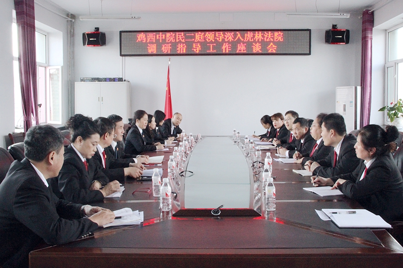 为了深入贯彻落实“全市基层法院民商事审判工作会议”精神,统一两级法院民商事审判工作“打官司不求人”的工作理念,4月10日,鸡西市中级人民法院民二庭庭长刘宝国及副庭长杨桂荣、杜平等一行5人到虎林法院调研、指导商事审判工作,调研采取座谈会形式进行。虎林法院党组书记、院长沙云凯出席并讲话,副院长盖凤旭、马玉兰及审管办、民一庭、民二庭、基层法庭全体员额法官、法官助理参加了座谈会。