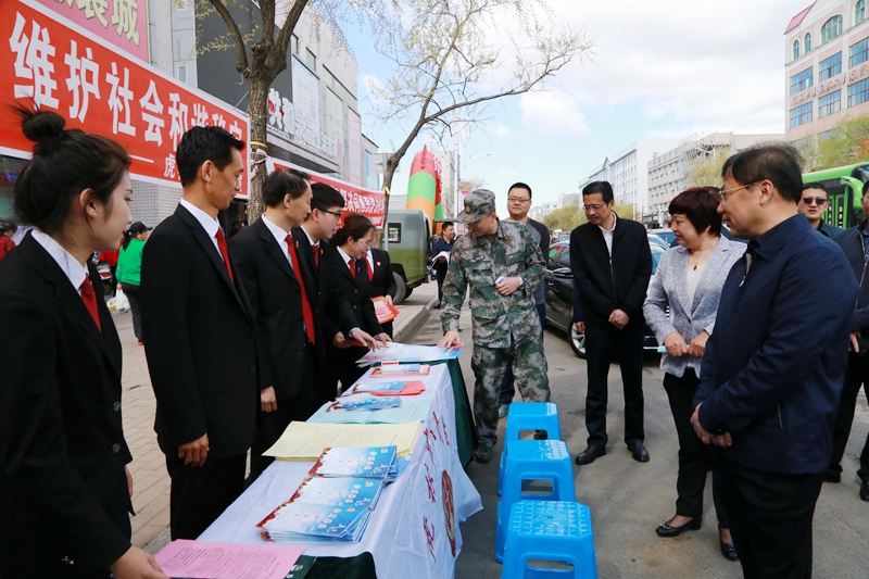 市委书记陈立新等市领导视察虎林法院宣传活动