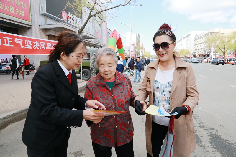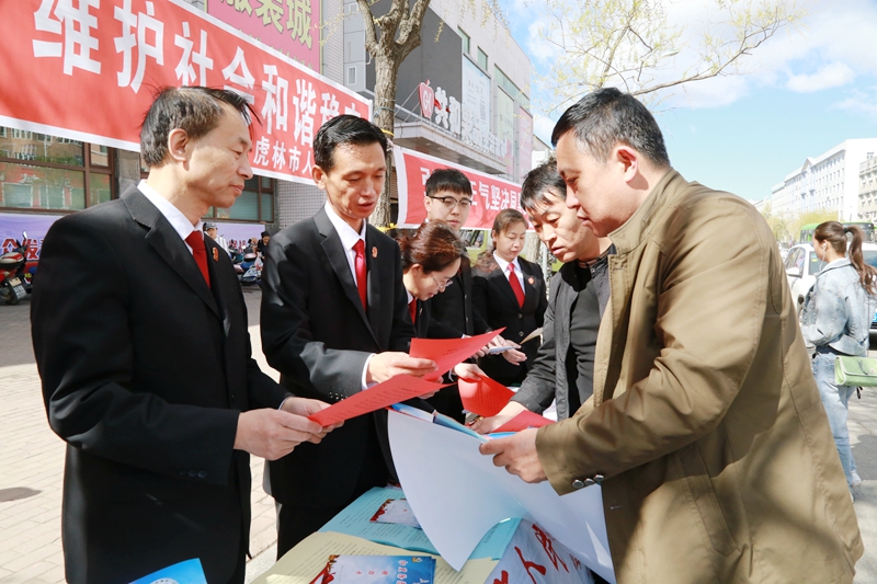 为深入开展扫黑除恶专项斗争,切实提升群众对扫黑除恶专项斗争的知晓率,提高群众参与扫黑除恶专项斗争的积极性,增强群众共建安全稳定社会环境的主动性,5月9日,虎林法院积极响市委号召,在辖区范围内开展为期7天的以“依法严惩黑恶势力·维护社会和谐稳定”为主题的扫黑除恶专项斗争普法宣传活动。