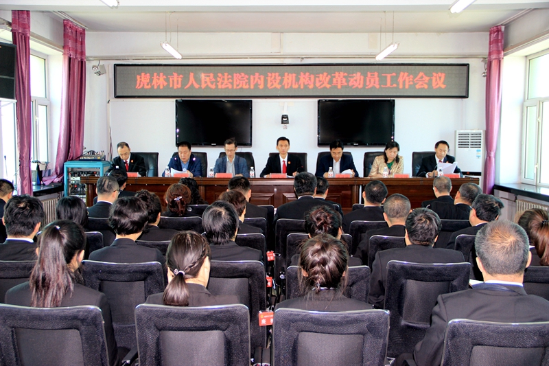 为贯彻落实上级法院关于内设机构改革工作部署,进一步深化司法体制改革,5月10日,虎林法院组织召开内设机构改革动员工作会议,全面启动内设机构改革工作。虎林法院党组班子及全体在编干警参加会议。会议还邀请虎林市委组织部副部长袭建福、市委政法委副书记徐明新、市人大法制委主任田金娥、市政协法制委主任刘成海到会指导。