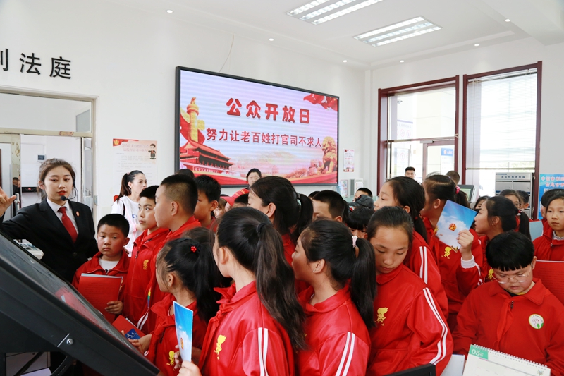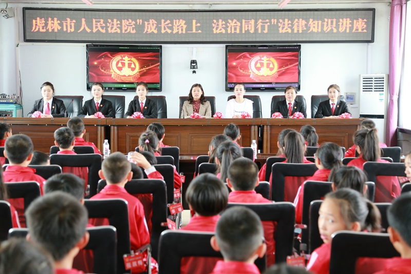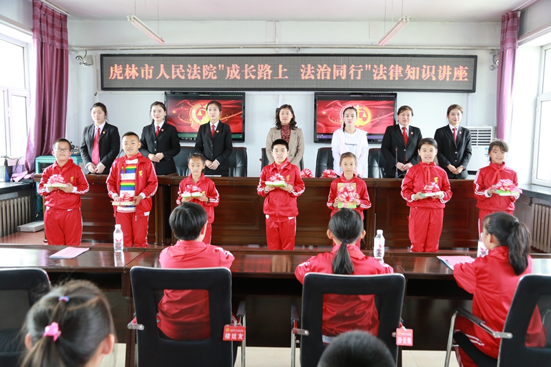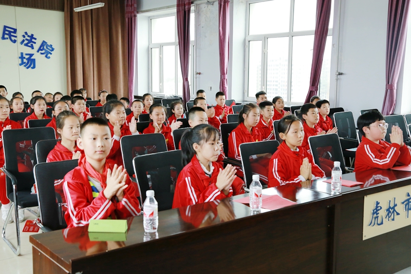 在六一国际儿童节来临之际,为进一步提高小学生遵纪守法、自律自爱的意识,5月30日下午,虎林法院积极开展“成长路上 法治同行”为主题的公众开放日活动,邀请虎林市第一小学50余名小学生在老师的陪同下走进虎林法院,为小学生们量身定制了一份丰富的“法治套餐”。