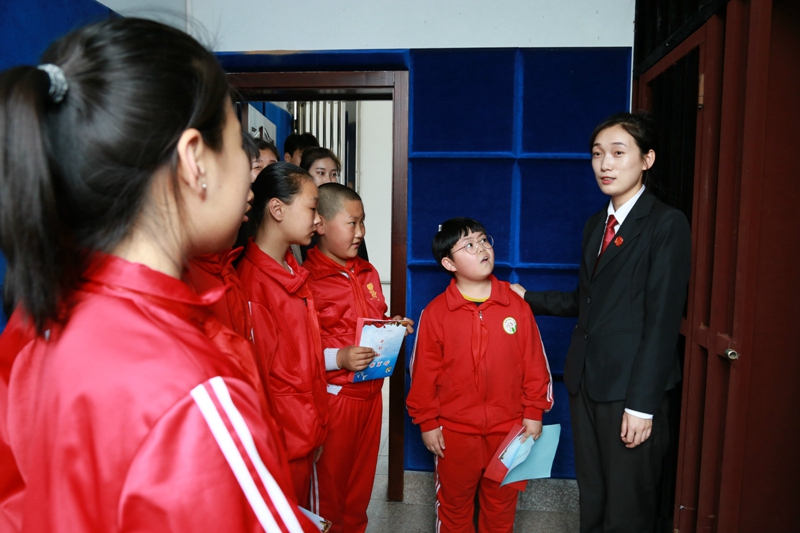 研究室的宣传干警们针对未成年犯罪、校园暴力、文明上网等与未成年密切相关的问题,与小学生们进行了讨论交流,并用鲜活的典型案例教育小学生们,通过以案说法,进一步增强小学生们学法、懂法、守法的观念。随后举行了授书仪式,法院法官向小学生们发放了法治教育读本作为六一儿童节的礼物,为小学生们提前送上一份意义非凡的节日祝福,小学生们用少先队礼向法院的叔叔阿姨们表达了感谢之情。