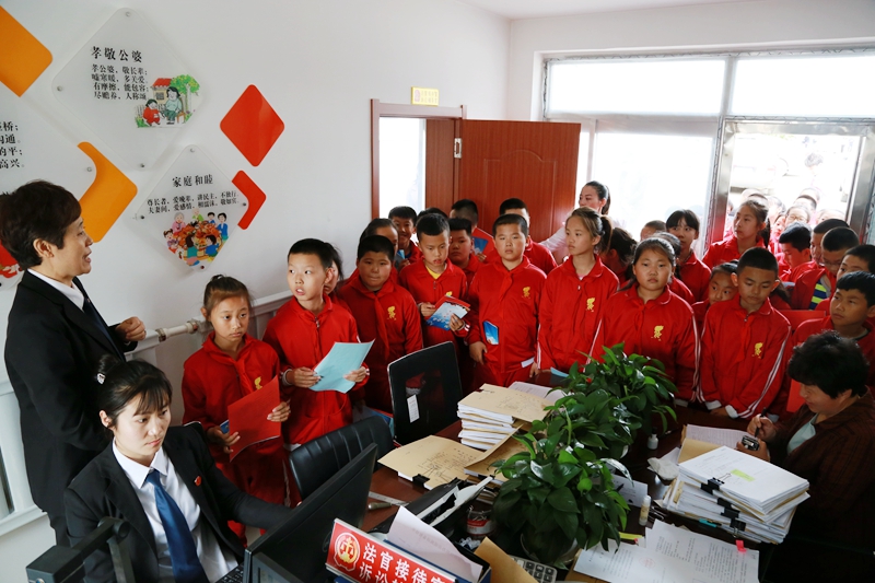 刚进入诉讼服务中心,小学生们便被各个服务窗口和电子服务设施所吸引。在讲解员的详细解说下,小学生们对法院的立案流程、“一站式”诉讼服务、便民利民的诉讼服务设施以及如何“打官司”有了粗浅的认识。