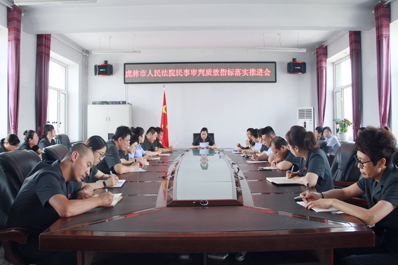 为进一步提高审判工作质效,顺利完成全年审判工作任务,7月25日,虎林市人民法院召开民事审判质效指标落实会,党组成员、副院长马玉兰主持,民事审判庭、立案庭、人民法庭全体员额法官、审判辅助人员参加了会议。