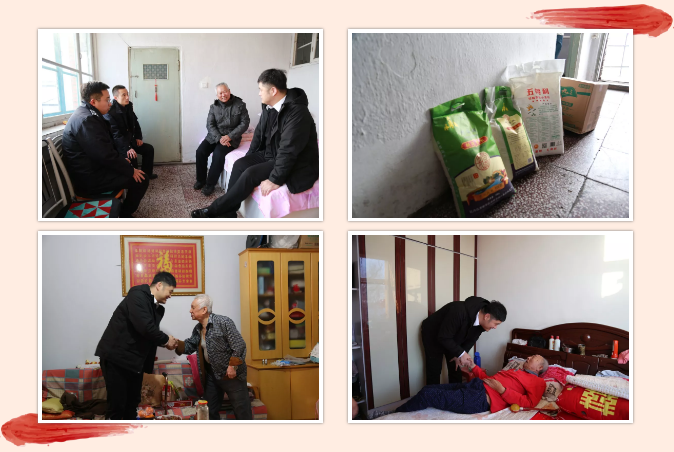 为充分展现法院对离退休老干部的关怀,值此新春佳节到来之际,虎林法院党组书记、院长沙云凯、党组副书记、常务副院长褚廷友、综合办公室主任、工会主席任伟伟一行6人,给离退休老干部带去米、面、油等生活用品,同时,送上院党组及全院干警节日的问候与祝福。