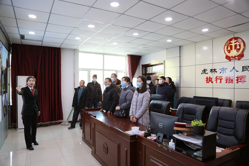 在讲解员的引导下,机关干部们依次参观了诉讼服务中心、科技法庭、法治文化浮雕、司法警察大队、执行指挥中心等场所,详细听取了法院诉讼立案、文化建设、审判执行等工作情况,亲自体验了便民利民的诉讼服务设施。在执行指挥中心,讲解员向机关干部们介绍了执行指挥中心的功能,机关干部们通过高清显示屏观看了执行案件流程信息系统、执行指挥车监控系统、执行单兵记录系统,对法院信息化建设、审判执行等工作有了更加深入的了解和认识。