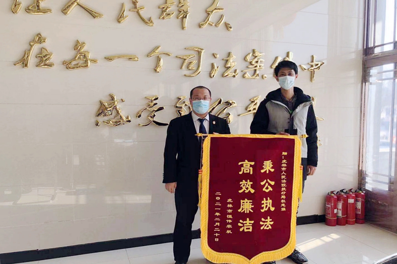 近日,申请执行人虎林市某农机销售有限公司的负责人来到虎林法院,将一面印有“秉公执法、高效廉洁”的锦旗送到执行局法官助理杜志强手中,对法官助理杜志强尽心尽职、高效执行表示由衷感谢。
