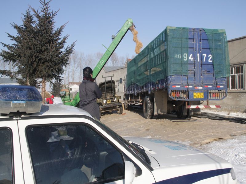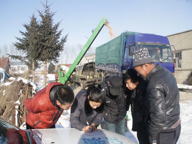 赶到于宾家的时候,已经接近十一点钟,于宾果然正在往收粮车上运送粮食。“杜法官,我正要给你们打电话呢,你们就来了”,于宾看到我们,马上迎了上来。在跟于宾和粮贩子了解情况后,得知于宾的粮食已经装了一车,现在正在装的是第二车,全部装完后再统一过称、打款。得知粮食还没拉走,我的心终于落了地,也不必理会于宾是否真心隐瞒出售粮食的事实,为了防止粮食转移,我们决定在现场看护装车。