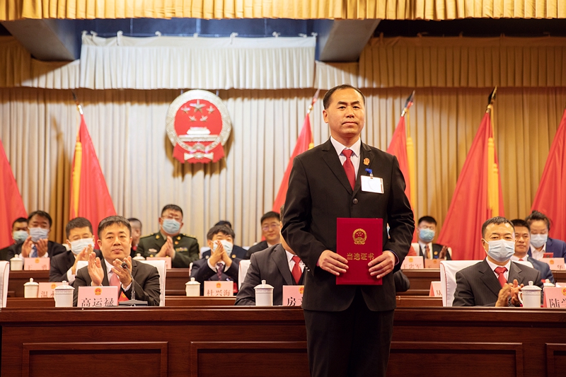 经过大会无记名投票选举,李宝东同志全票当选虎林市人民法院院长并进行宪法宣誓,虎林市人大常委会主任房文发向李宝东同志颁发当选证书。