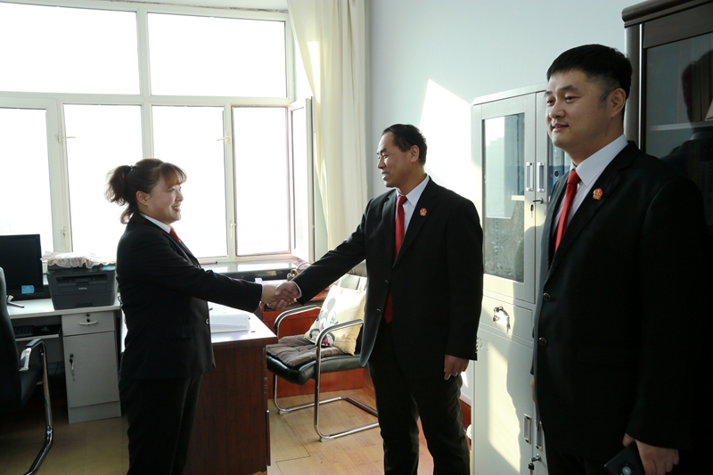 随后,李宝东一行慰问全国办案标兵张淑梅,并代表党组送去关怀和新年祝福。感谢她多年来为法院发展作出的努力和贡献,希望她能够继续立足本职,率先垂范,用一言一行影响身边人,用先进事迹来教育身边人,发挥良好的先优典型的示范、带动、引领作用。
