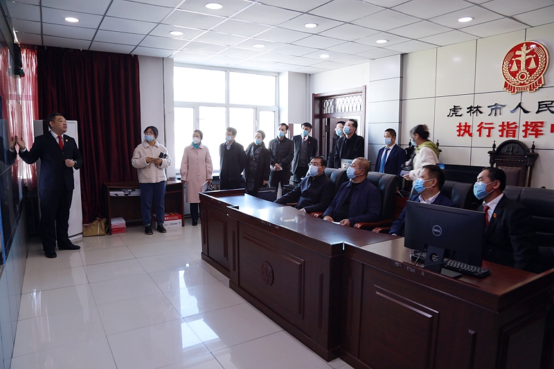 受邀领导先后参观了法院文化浮雕、法警大队、执行指挥中心、诉讼服务中心、数字化审判法庭等区域,讲解员向各位代表详细介绍了诉讼立案的相关流程,零距离感受虎林法院智慧法院建设成果。