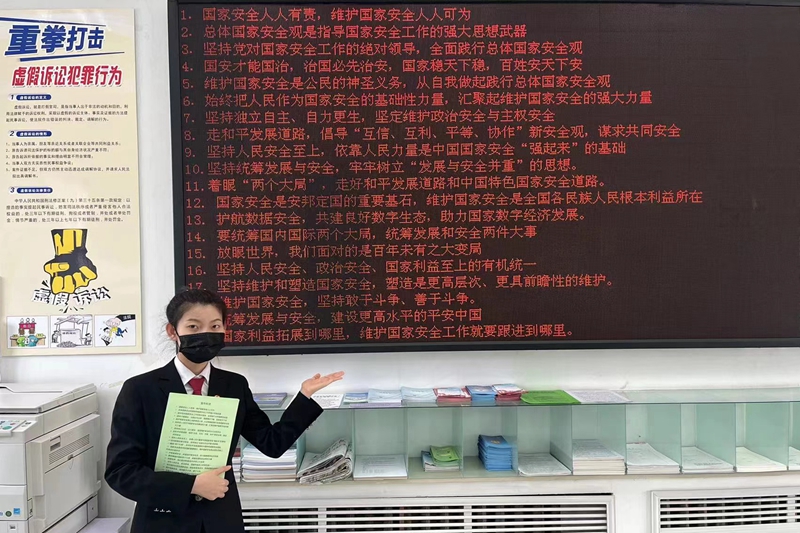 为认真贯彻落实习近平总书记关于国家安全的重要论述,推动国家安全宣传教育工作,进一步增强干警国家安全意识,统筹推进疫情防控和国家安全宣传教育两手抓、双促进,为迎接党的二十大胜利召开营造良好氛围。4月15日,虎林法院刑庭全体干警开展了“4·15”全民国家安全教育日宣传学习教育活动。