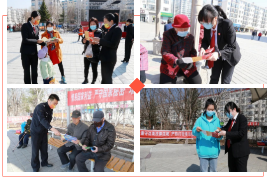为加强国家安全法律法规宣传力度,切实提升人民群众安全意识,在第七个全民国家安全教育日到来之际,虎林法院积极响应中院团委号召,以“4.15全民国家安全教育日”为契机,组织虎头法庭、法警大队青年文明号及青年干警,开展国家安全宣传教育活动。