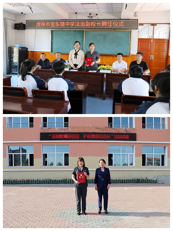 为进一步加强青少年法治教育,让校园普法落到实处,6月13日,虎林法院员额法官王莉莉、张丹受聘担任宝东镇中心学校、虎林市第三小学法治副校长暨开展法治教育专题讲座,法院、学校携手构建和谐平安校园,护航青少年健康成长。