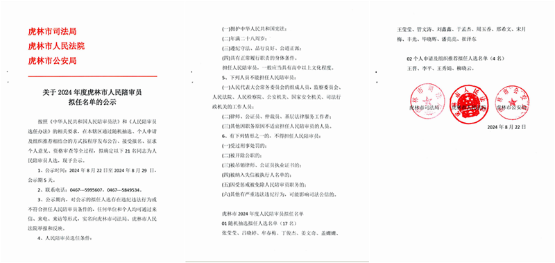 关于2024年度虎林市人民陪审员拟任名单的公示
