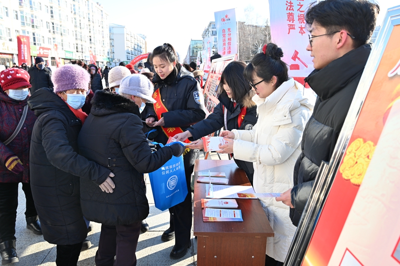 为深入贯彻习近平法治思想,12月4日,在第十二个国家宪法日来临之际,虎林法院以 “学习宣传贯彻习近平法治思想,推动宪法深入人心” 为主题,组织干警深入吉祥广场开展宪法普法活动。
