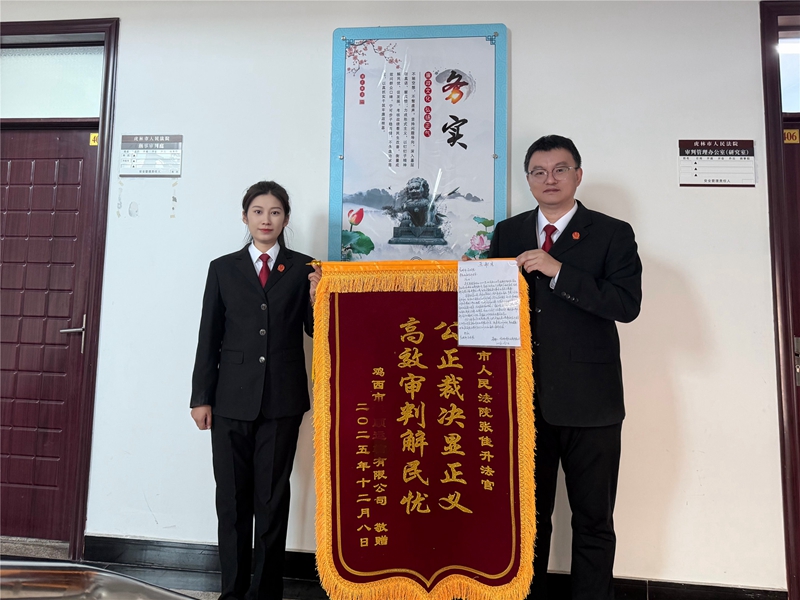 这面锦旗和这封感谢信不仅承载着企业对法官个人的赞誉,更是对虎林法院持续优化诉讼服务、提升审判质效、护航企业健康发展的认可与鞭策。虎林法院将继续秉持"司法为民、公正司法"宗旨,不断延伸司法职能,努力让每一个案件成为优化法治化营商环境的坚实基石,为区域经济社会高质量发展提供更加有力的司法保障。