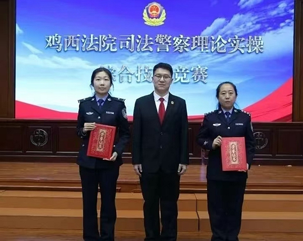 近日,鸡西市中级人民法院法警支队以国家安全教育日为契机,组织开展全市司法警察理论实操综合技能竞赛。虎林市人民法院选派3名司法警察参加此次竞赛,与全市辖区内其他基层法院的参赛队伍同台竞技,以司法警察理论知识笔试、手铐的使用、安全检查、X光机图片识别及视频纠错五项核心内容进行比拼,充分展现了虎林法院法警队伍过硬的专业素养和与昂扬向上的精神风貌。