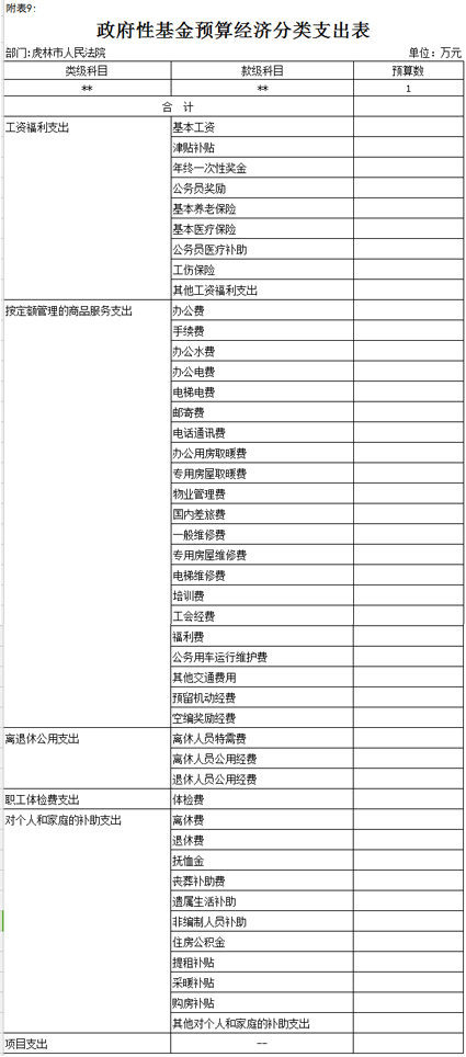 九、政府性基金预算经济分类支出表,详见支出表。