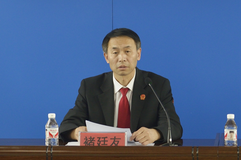 虎林法院党组副书记、常务副院长褚廷友主持发布会
