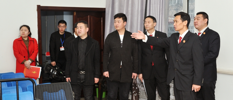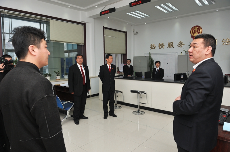 虎林市人大代表、政协委员、市委政法委领导、记者参观便民诉讼服务中心