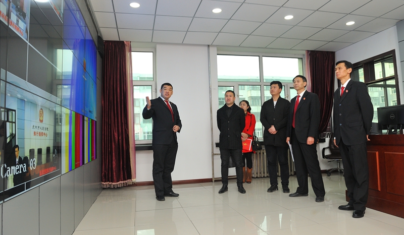 虎林市人大代表、政协委员、市委政法委领导、记者参观执行指挥中心