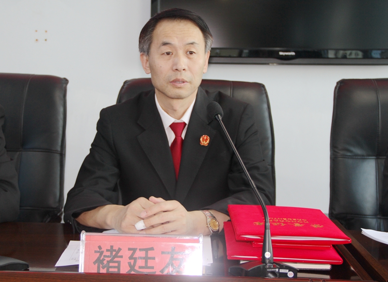 虎林法院党组副书记、常务副院长褚廷友主持会议