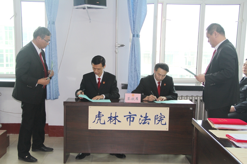 虎林法院党组书记、院长沙云凯与主管院领导签订党风廉政建设责任状