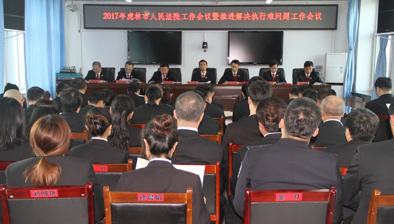 为坚决把中院会议精神落到实处,沙云凯院长结合虎林法院实际,对2017年工作提出要集中精力抓司法审判、全力以赴打执行硬仗、聚精会神抓司法改革、脚踏实地抓司法为民、坚持不懈抓信息技术、坚定不移抓从严治院等六个方面20项工作,同时对每项具体工作都明确了责任领导、责任部门和完成时限。