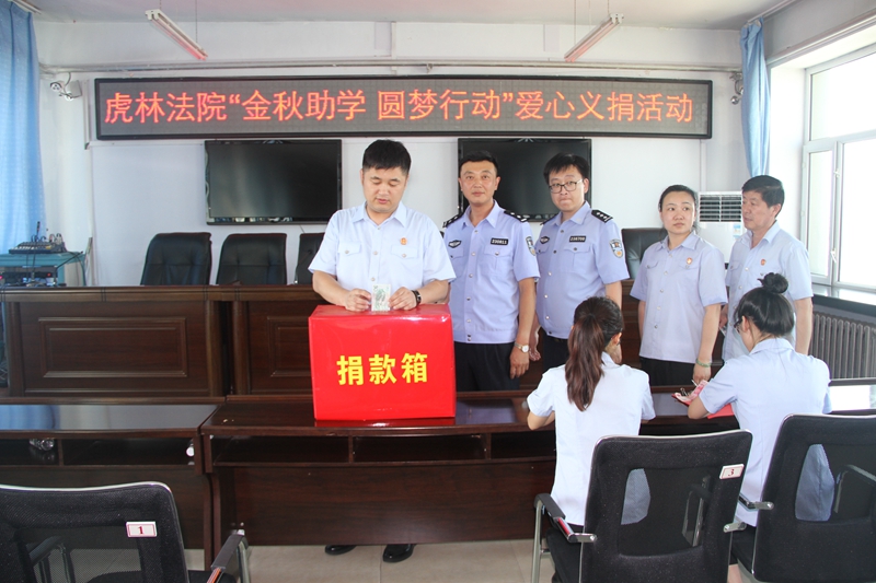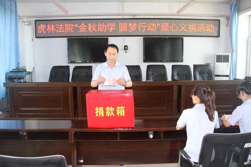 虎林法院党组充分发挥模范带头作用,以身作则,积极踊跃捐款,广大干警积极响应,纷纷慷慨解囊,以实际行动奉献自己的力量。100元、200元、300元……捐助的款项不同,但干警们奉献爱心,帮助贫困学子圆大学梦的初衷是一致的。在活动现场共筹得3205元善款,充分展现了虎林法院干警为民、亲民、爱民的情怀和乐于助人、勇于奉献的精神风貌。