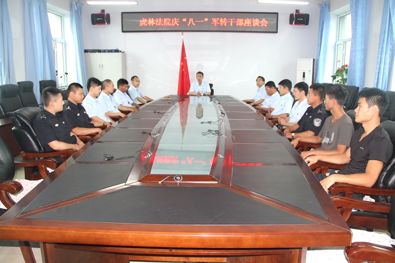 为庆贺建军90周年,8月1日上午,虎林法院召开庆“八·一”军转干部座谈会,邀请在法院工作的10名转业复退军人参加座谈会,党组成员参加座谈。座谈会由沙云凯院长主持。