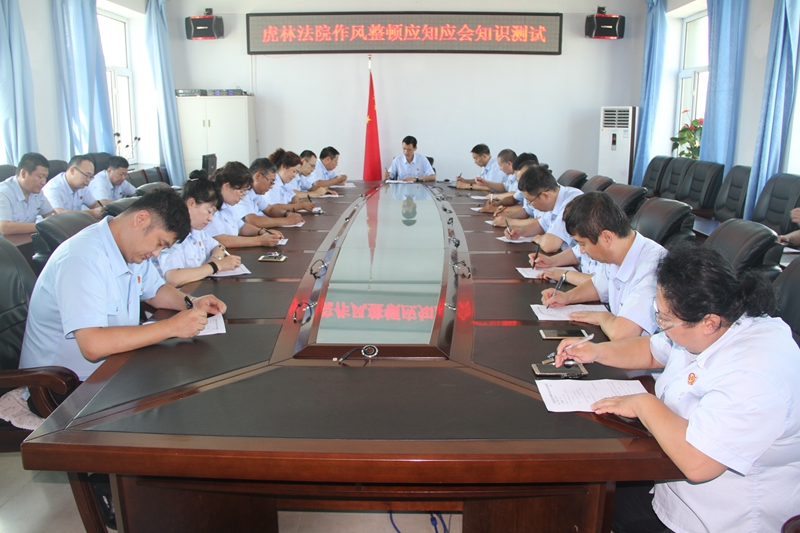 为检验机关作风整顿活动成效,进一步提高干警廉洁自律意识,推进反腐倡廉和党风廉政建设,8月14日下午,虎林法院组织党组成员及全体在编干警开展了作风整顿应知应会知识测试。