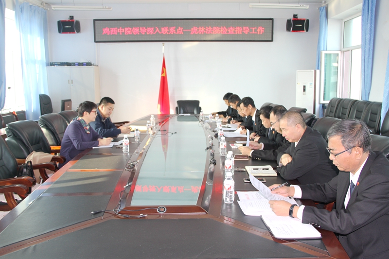 10月27日上午,鸡西中院政治部主任高国滨一行深入联系点虎林法院督促检查机关工作。